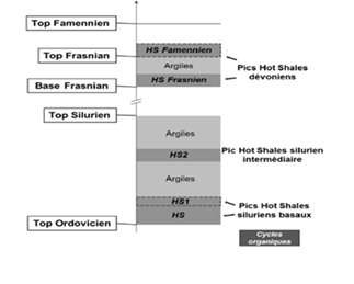 - Silurien Hot Shale 2: The thickness of this interval varies from about 40 to 100 meters, with a TOC oscillating from 2 to 4% and a state of maturity varying from the oil phase to dry gas.